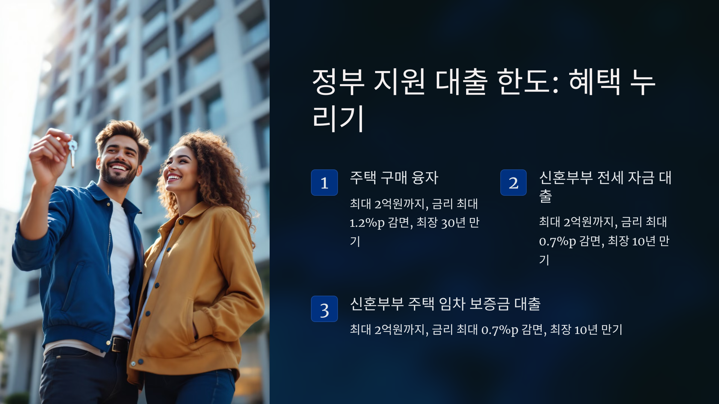 또한, 자녀가 있는 신혼부부의 경우 추가 한도 혜택을 받을 수 있어요. 자녀 1명당 대출 한도를 2천만 원까지 더 받을 수 있는 상품도 있으니, 이런 혜택을 적극 활용해 보세요.